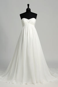 A-line Sweetheart Sleeveless Floor-length Chiffon Maternity Wedding Dress with Court Train-715554