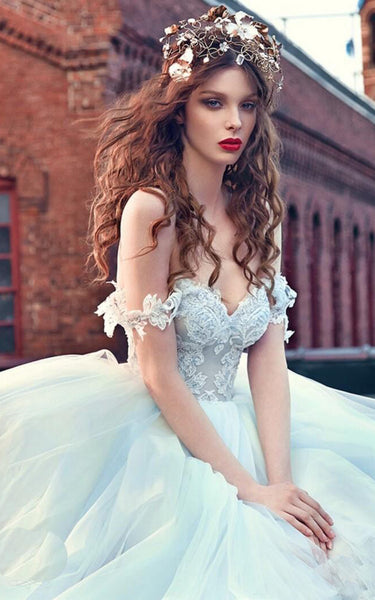 Adorable Ball Gown Off-The-Shoulder Wedding Dress With Lace Top-713767