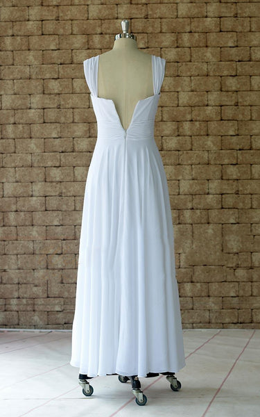 Ankle-Length Cap Sleeve Chiffon Dress-711701