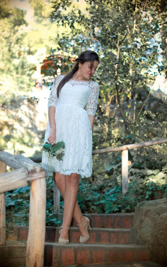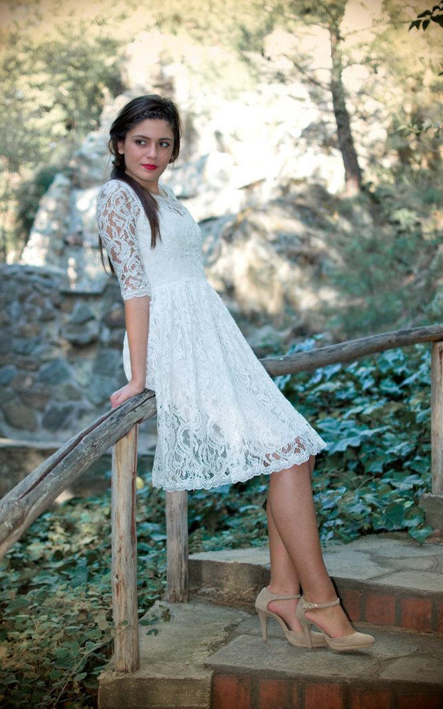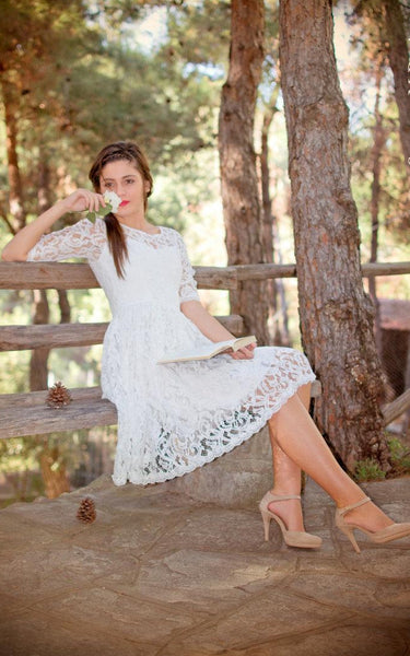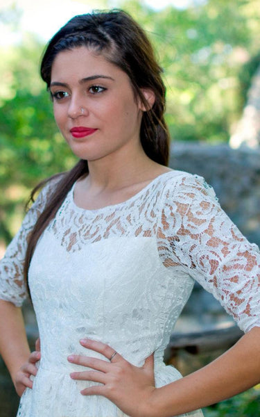 The Ankle-Length Half-Illusion-Sleeve Jewel Bridal Dress-711026 is far and away, one of our most popular items. People can't seem to get enough of it.