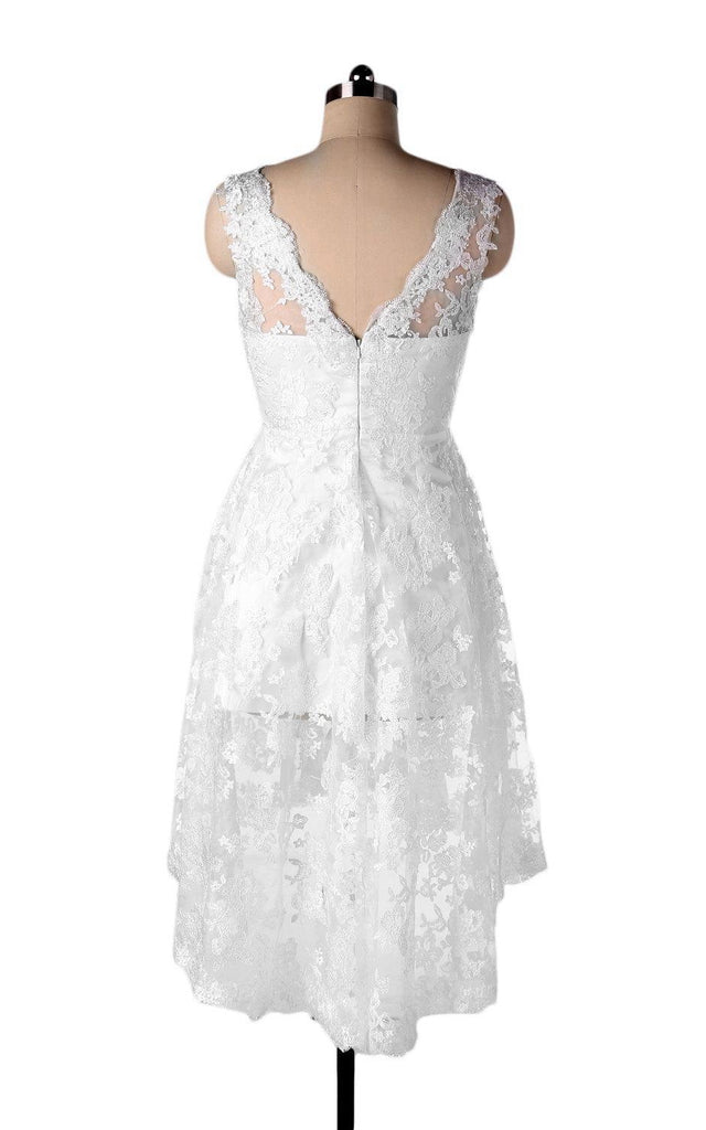 Backless Lace V-Neckline A-Line Bridal Chiffon Dress-711487