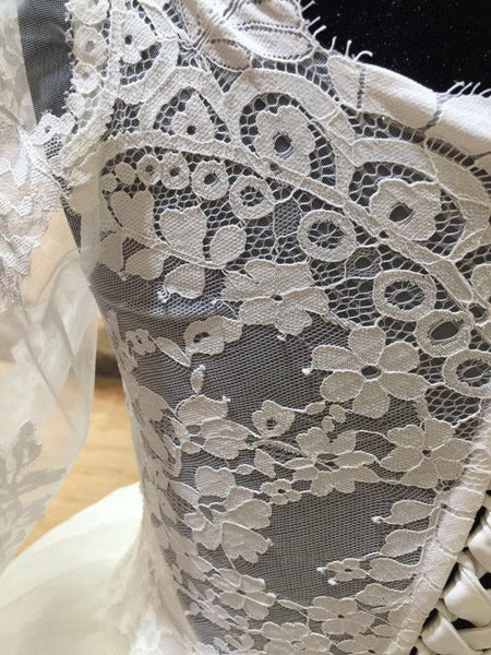 Bateau Neck Long Illusion Sleeve Tulle Ball Gown With Lace Hemline-ET_711506