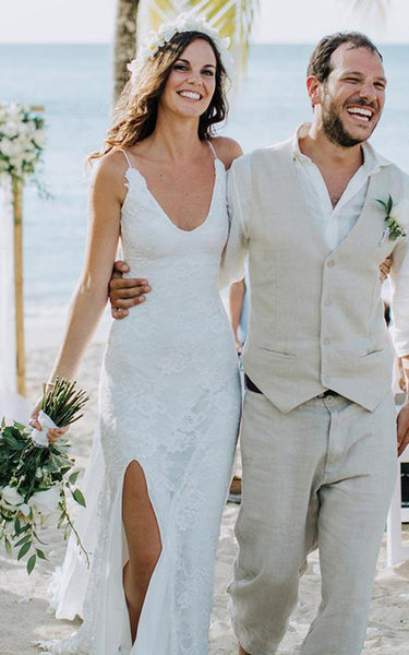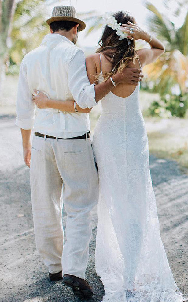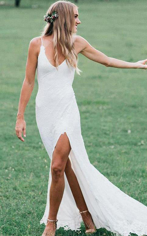Imagine if you could be satisfied and content with your purchase. That can very much be your reality with the Beach Floral Boho Lace Wedding Dress Fantasy Elopement Destination Split Front Spaghetti Straps Low Back Bridal Gown.