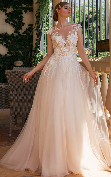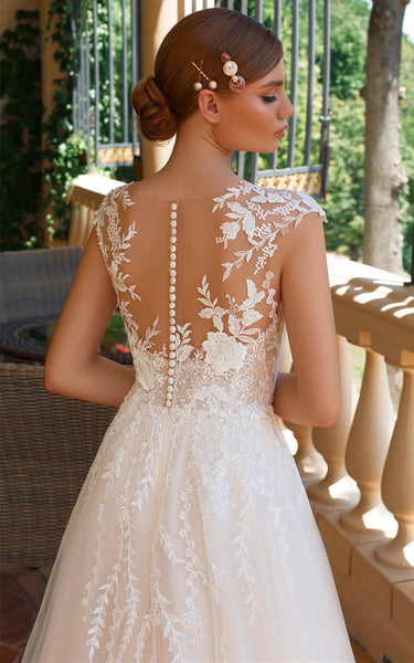 Beautiful A Line Bateau Neck Tulle Sweep Train Wedding Dress with Appliques-716377