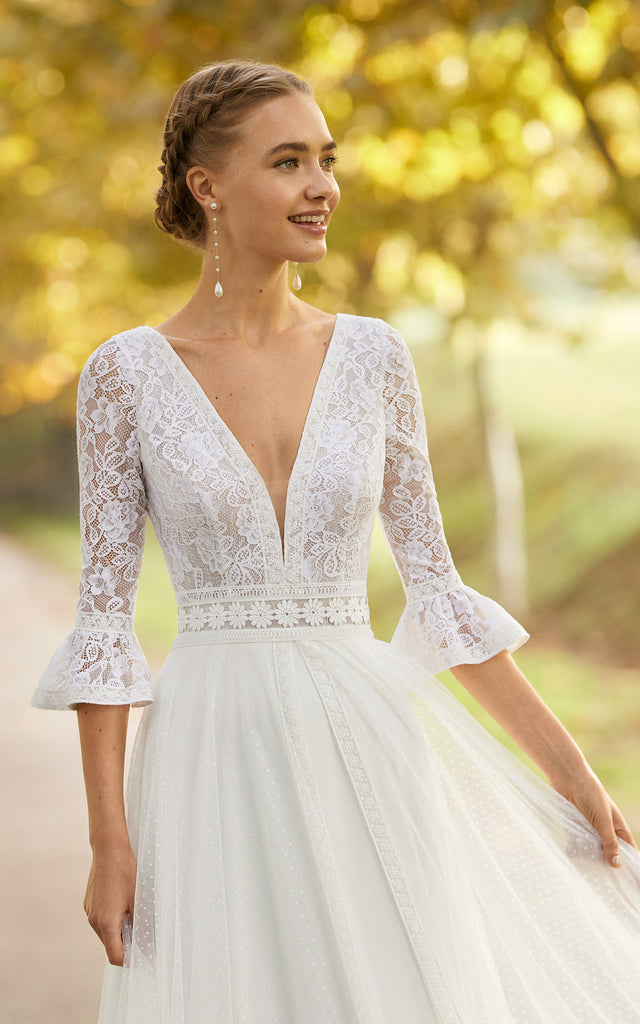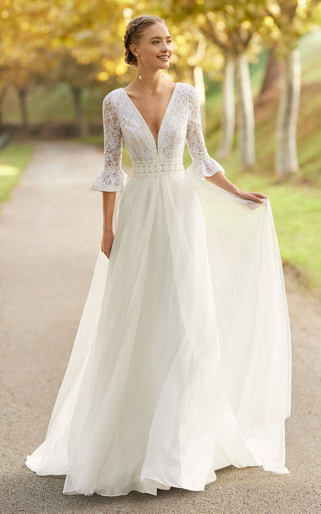 Life is too short to live without the Bohemian A-Line V-neck Tulle Wedding Dress With Button Back And Appliques-716726. Be happy. Be Content. Be Satisfied.