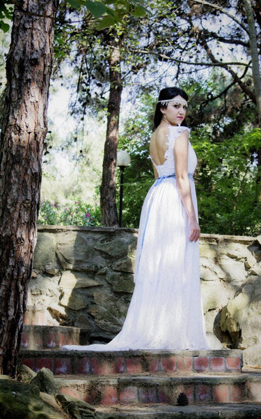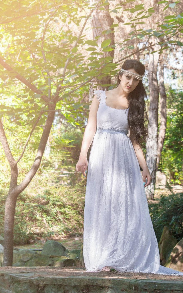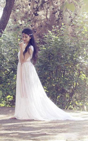 Boho Square Neck Backless Lace Wedding Dress With Sash And Flower-711017