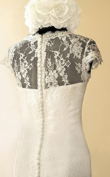 Cap-Sleeve Illusion Button Short Column Satin Dress-711443