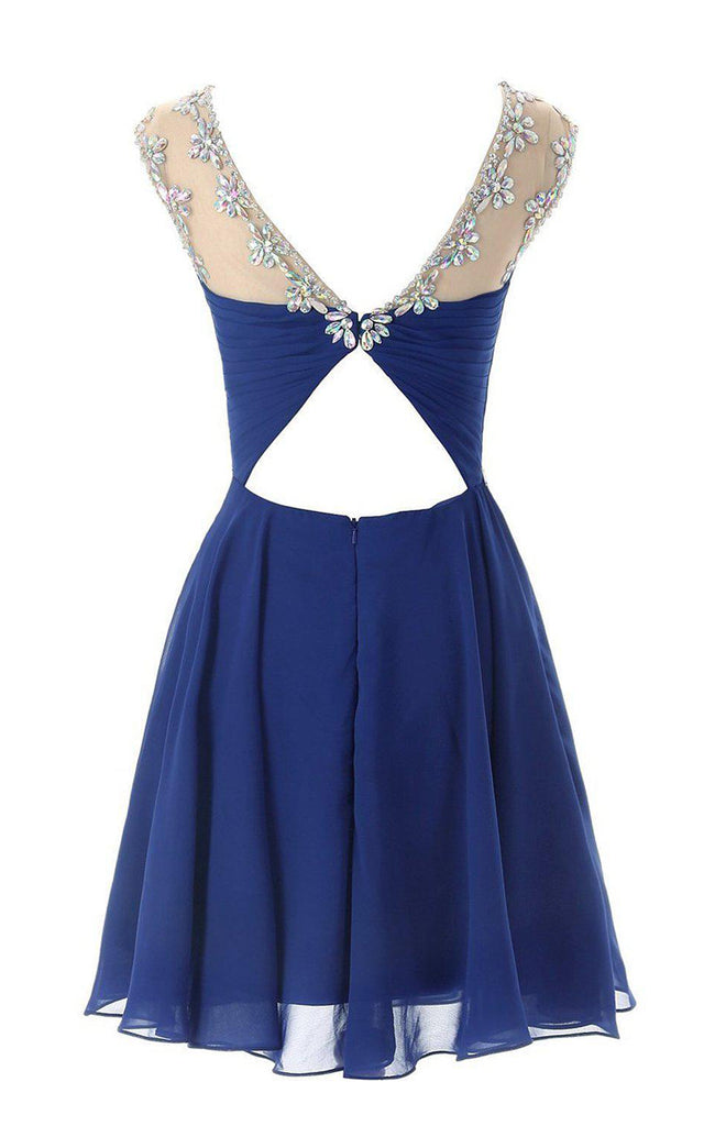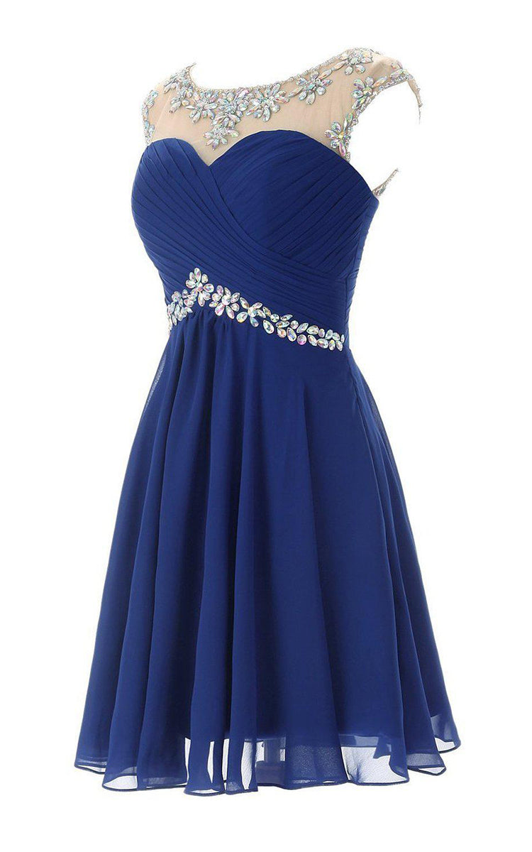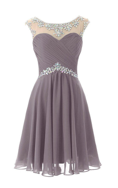 Cap-sleeved Chiffon Dress With Beading and Keyhole Back-310603