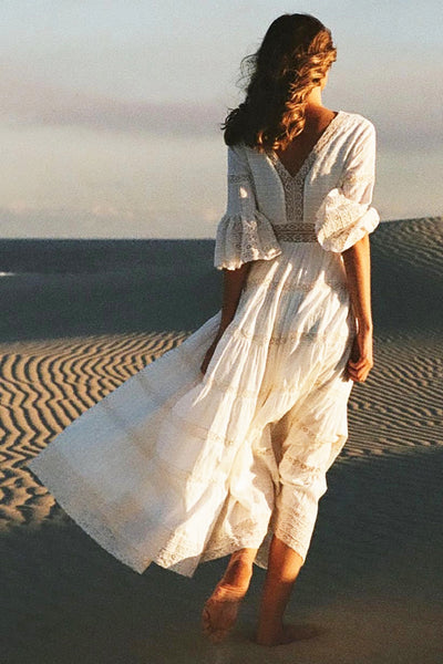 Casual Lace Sheath Poet Sleeve Low-V Back Bridal Gown