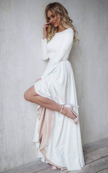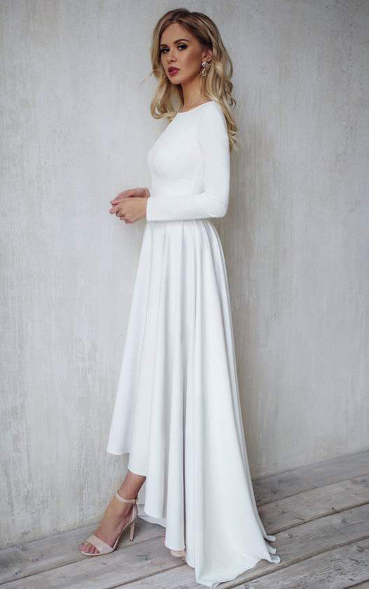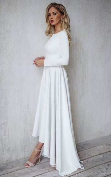 Casual Modern Bateau A Line High-Low Long Sleeve Wedding Dress-716029