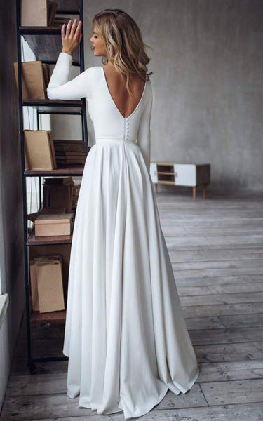 The Casual Modern Bateau A Line High-Low Long Sleeve Wedding Dress-716029 is far and away, one of our most popular items. People can't seem to get enough of it.
