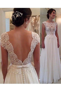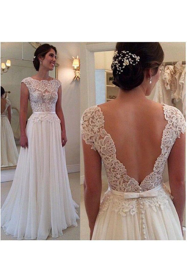 Chiffon Long Lace Open Back Wedding Dress Sleeveless Elegant