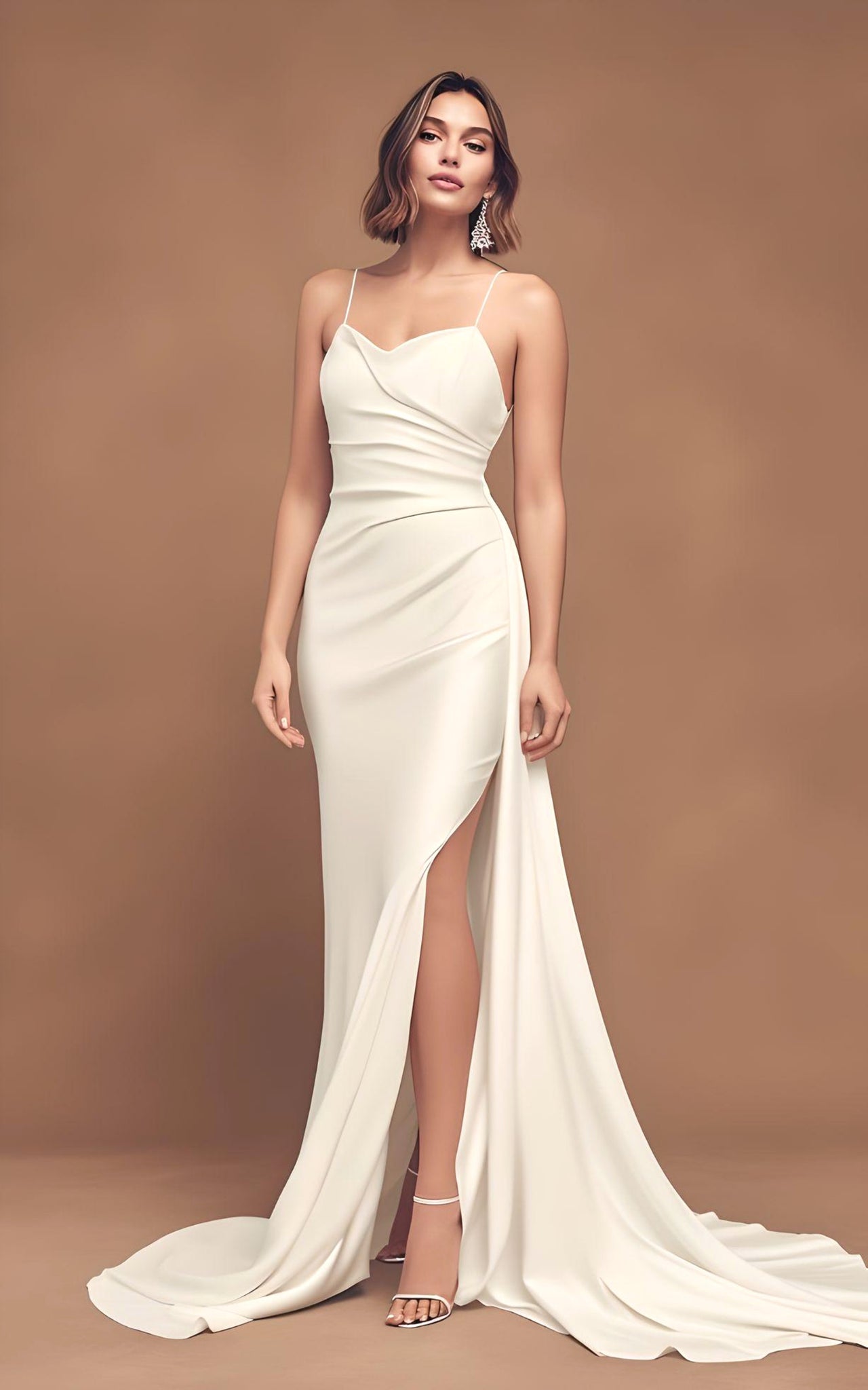 Every product is unique, just like you. If you're looking for a product that fits the mold of your life, the Classic Mermaid Spaghetti Straps Satin Wedding Dress Sexy Fit and Flare Backless Split Front Bridal Gown with Sweep Train is for you.