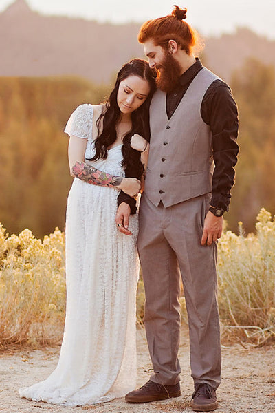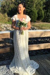 Country Queen Anne Short Sleeve Lace Pleated Maternity Wedding Dress-715508