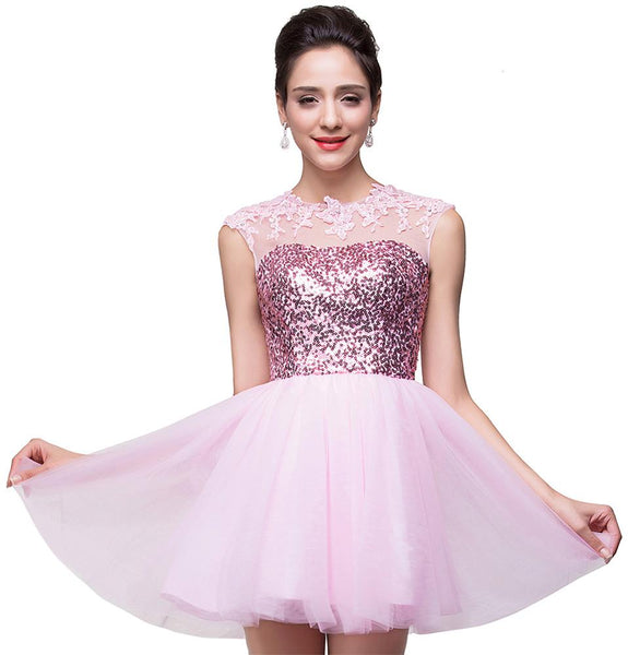 Cute Pink Sequins Sleeveless Homecoming Dress - 319643