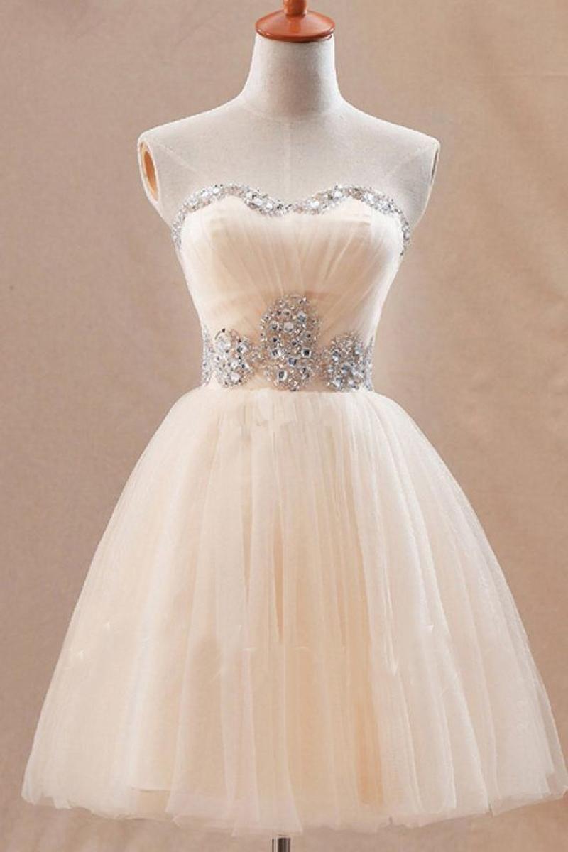Every product is unique, just like you. If you're looking for a product that fits the mold of your life, the Cute Sweetheart Short Tulle Homecoming Dress With Crystals is for you.