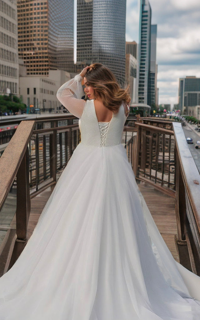 Life is too short to live without the Elegant Minimalist Plus Size Long Sleeves Wedding Dress Modest Casual A-Line V-Neck Tulle Bridal Gown. Be happy. Be Content. Be Satisfied.