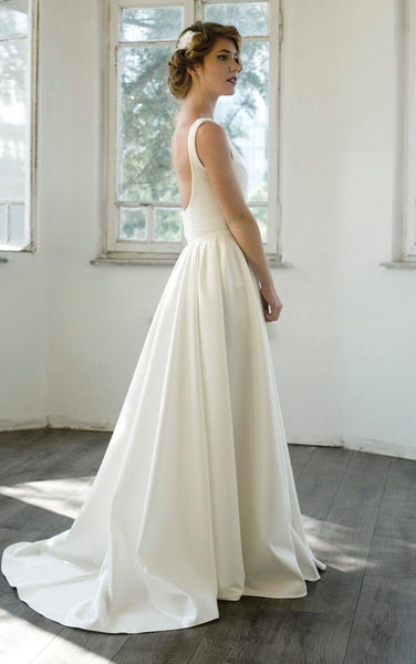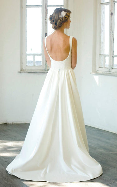 Elegant V-Neck Sleeveless Floor-Length A-Line Satin Wedding Dress-ET_711000