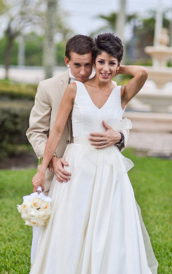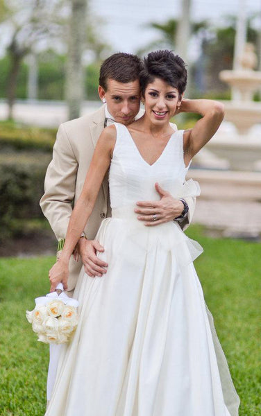 The Elegant V-Neck Sleeveless Floor-Length A-Line Satin Wedding Dress-ET_711000 is far and away, one of our most popular items. People can't seem to get enough of it.