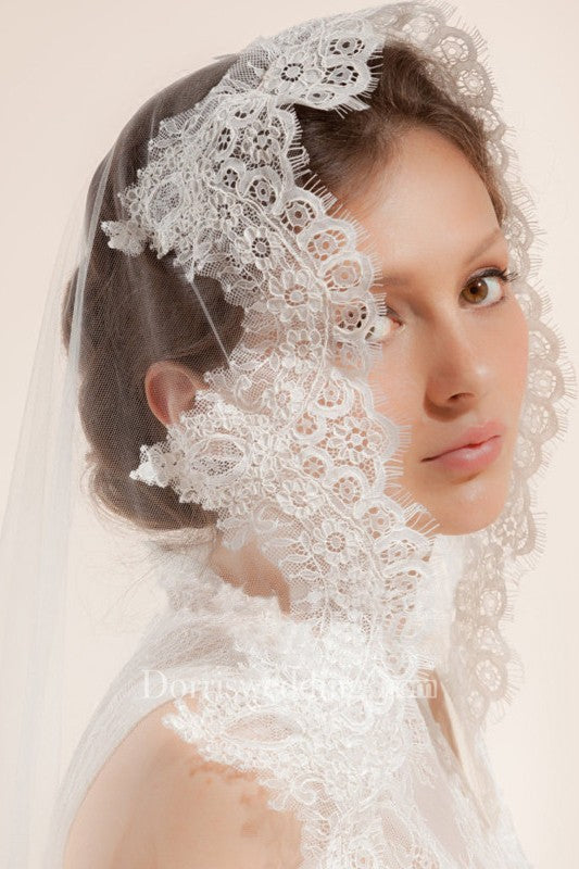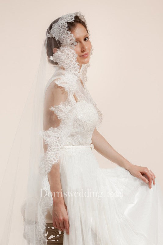 European Retro Lace Bride Wedding Veil Brigade Style Trailing Soft Yarn