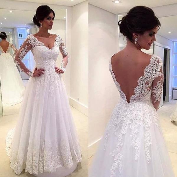 Fabulous Long Sleeve Pleated Long Lace Dress With Low-v Back Style-BU_708779