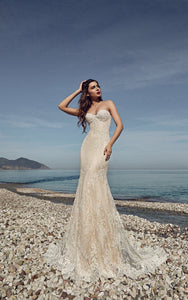 Floor-length Sweetheart Sleeveless Corset Back Lace Sheath Dress-714276