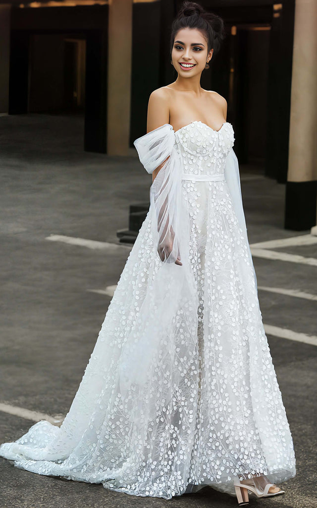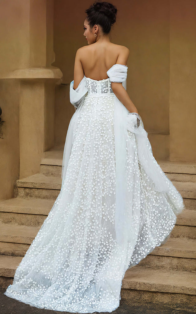 Floral Beach Sweetheart Neckline A-Line Wedding Dress Boho Lace Sleeveless Sweep Train Bridal Gown