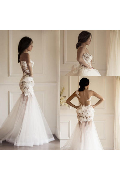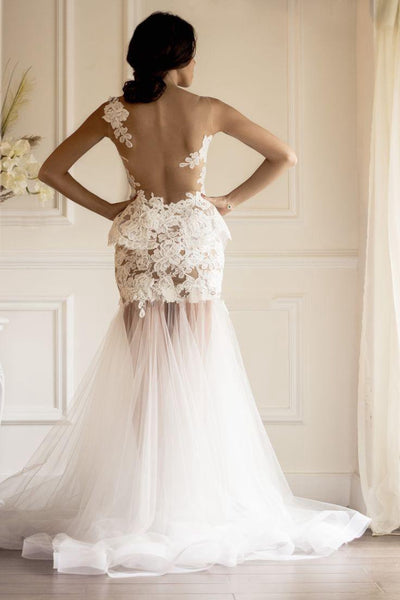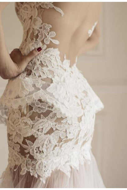 The Floral Elegant Mermaid Boho Lace Appliqued Wedding Dress Illusion Romantic Beach Garden Sleeveless Maxi Floor Length Bridal Gown is the yin, to your yang. You've found what you're looking for.