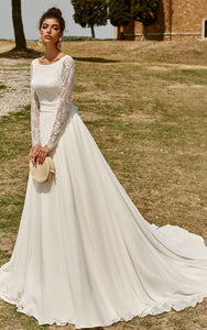 The Floral Modest A-Line Ball Gown Wedding Dress Elegant Western Illusion Long Sleeves Bateau Neckline Deep-V Back Bridal Gown is the product you didn't think you need, but once you have it, something you won't want to live without.