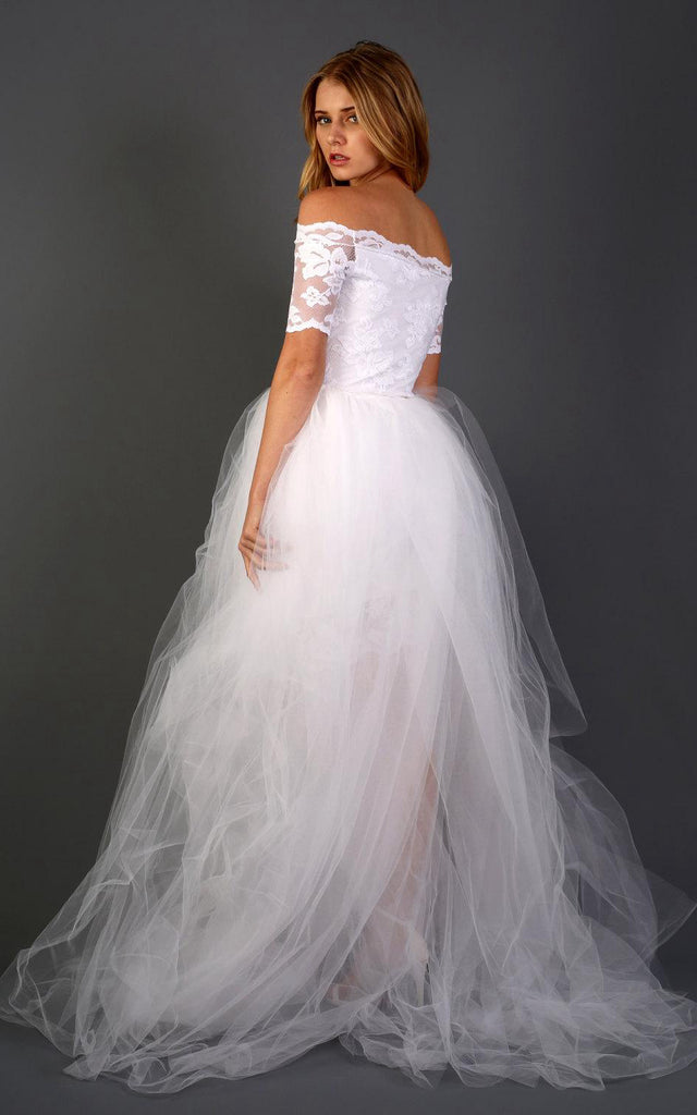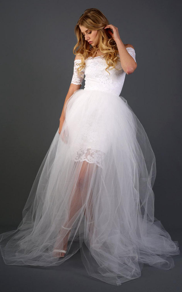 Full Lace Off-Shoulder Short Sheath Wedding Dress With Detachable Skirt-ET_711347
