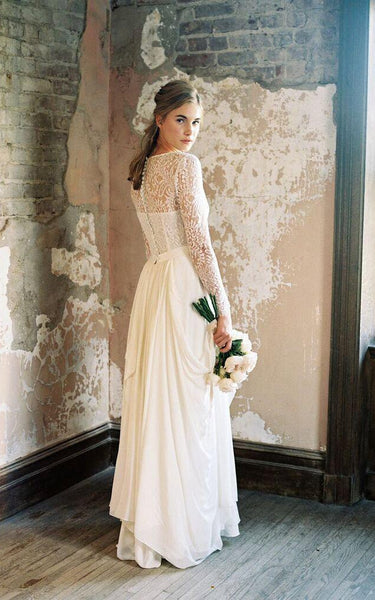 The V-Neck Illusion Long Sleeve Dress With Draping And Illusion Back is the yin, to your yang. You've found what you're looking for.