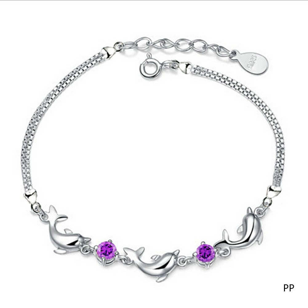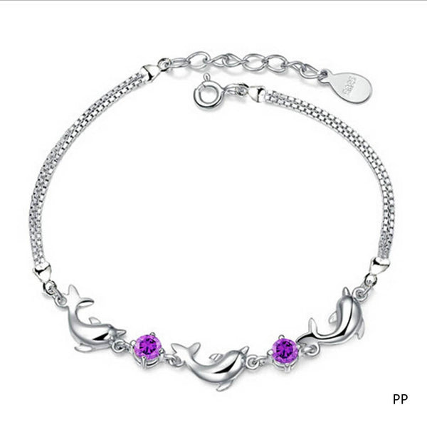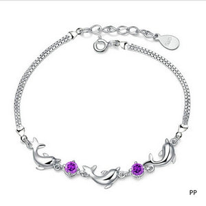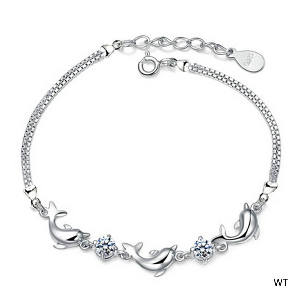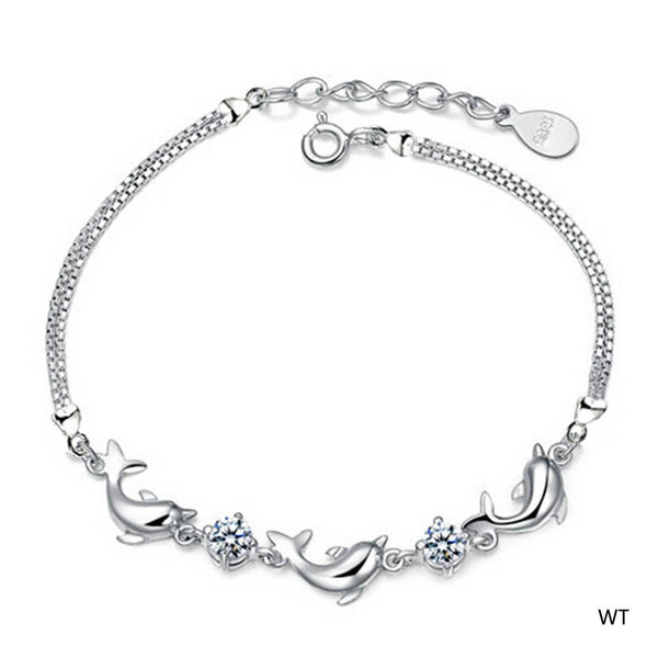 Girls Fashion 925 Sterling Silver Dolphin Crystal Diamond Bracelet