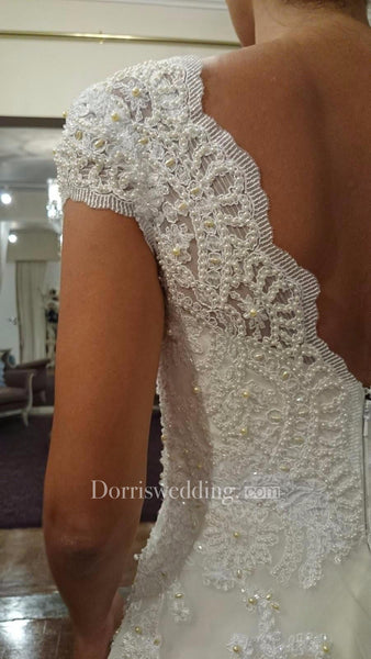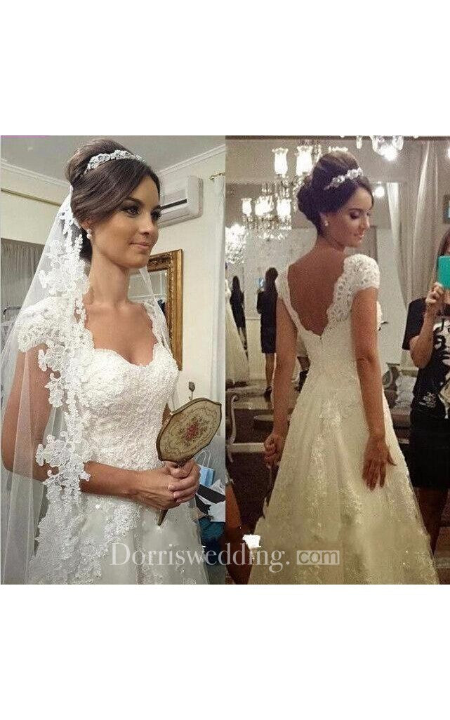 Glamorous Sweetheart Cap Sleeve Wedding Dress With Lace Appliques