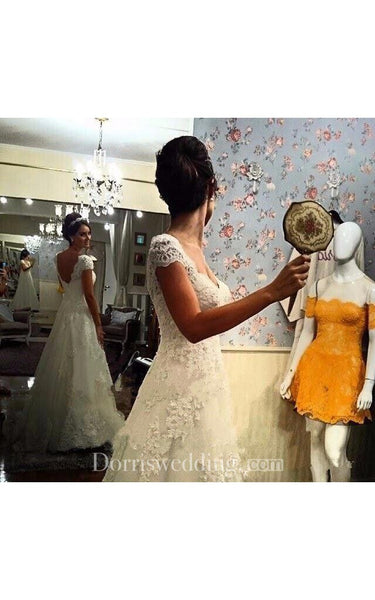 The Glamorous Sweetheart Cap Sleeve Wedding Dress With Lace Appliques is the yin, to your yang. You've found what you're looking for.