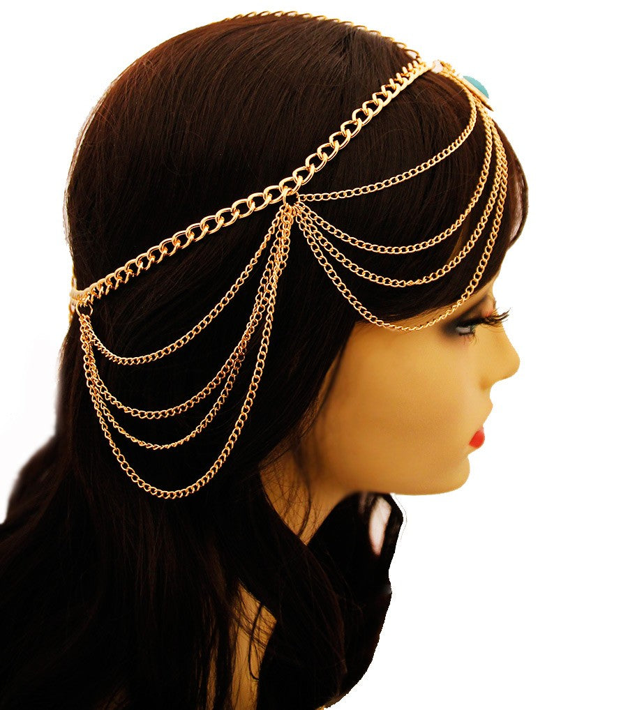 On the fence about this Gold and Turquoise Head Chain? Don't be. Let our satisfaction guarantee address your concerns.