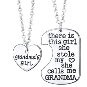 Do you love your granddaughter? Are you the missing link to your granddaughter's heart? If you love your granddaughter, let her know with this special charm necklace set! Its custom engraving "There is this girl she stole my heart she calls me grandma" and matching heart to interlock with "Grandma's Girl" engraved, will have your granddaughter beaming when she receives this gift - she will never want leave home without it!