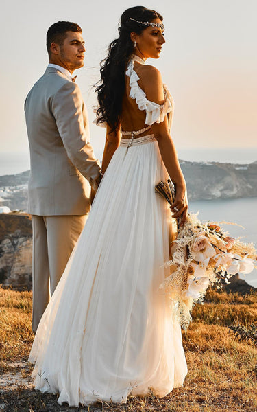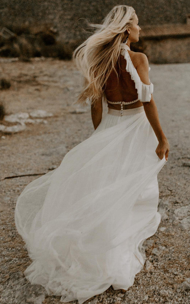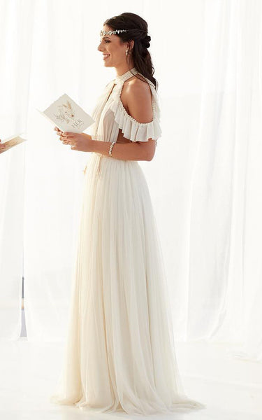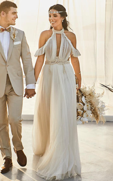 The Grecian A-Line Off-the-shoulder Tulle Wedding Dress With Halter Neckline And Sash-716605 is the yin, to your yang. You've found what you're looking for.
