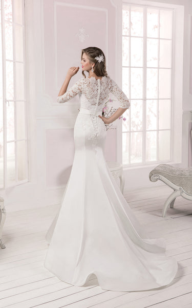 Imagine if you could be satisfied and content with your purchase. That can very much be your reality with the Half Sleeve Lace Top Long Mermaid Dress with Crystal Detailing-714170.