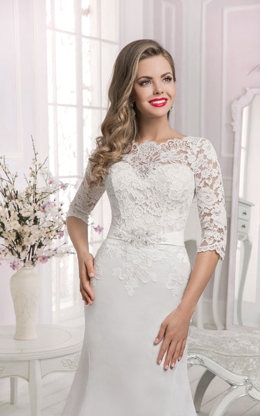 Half Sleeve Lace Top Long Mermaid Dress with Crystal Detailing-714170