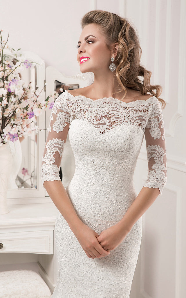 Half Sleeve Scalloped Neckline Lace Mermaid Dress-714173