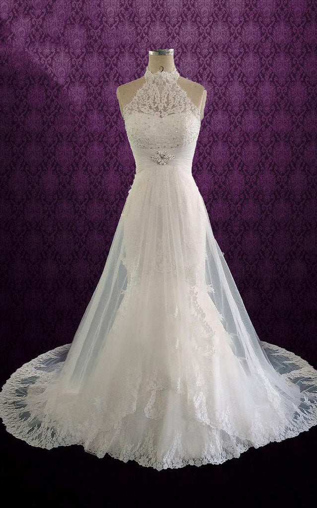The Halter Sleeveless Lace Weddig Dress With Beading And Pleats-710974 is far and away, one of our most popular items. People can't seem to get enough of it.