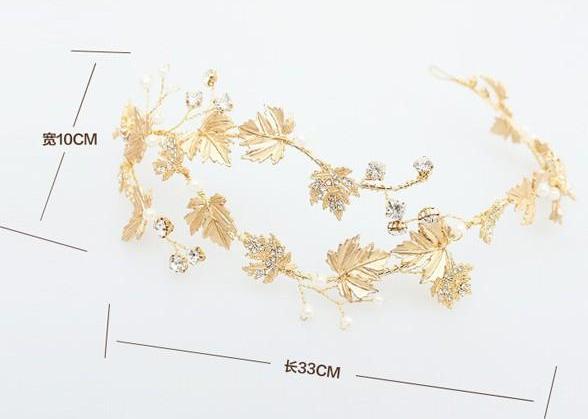 Handmade Vintage Golden Leaves Rhinestones Vines Hairband Bespoke-860302