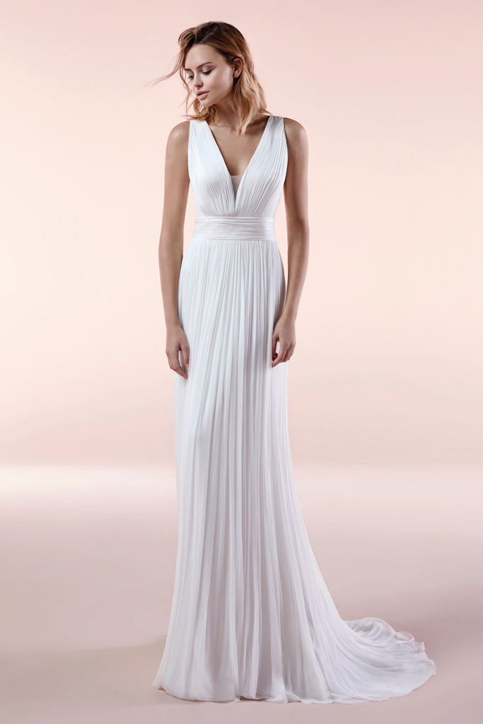 Every product is unique, just like you. If you're looking for a product that fits the mold of your life, the Illusion Sleeveless Deep V-neck Chiffon Gown With Sash And Pleats - 715657 is for you.