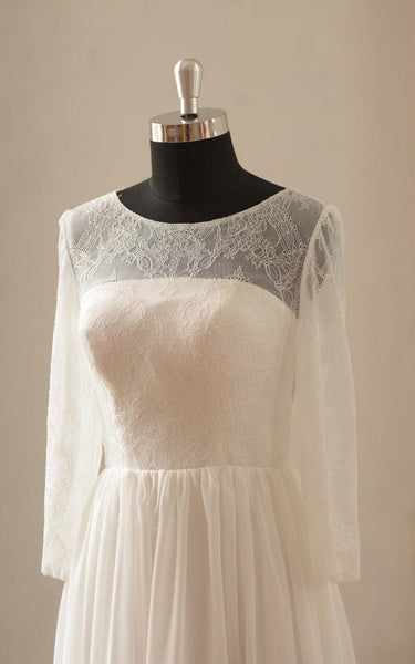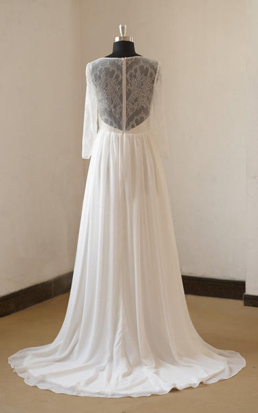 Every product is unique, just like you. If you're looking for a product that fits the mold of your life, the Jewel Neck Long Sleeve A-Line Chiffon Wedding Dress With Open Back-ET_711123 is for you.