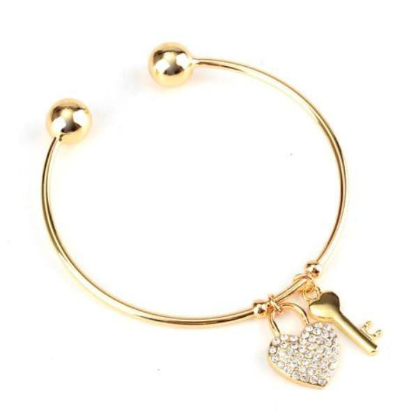 Imagine if you could be satisfied and content with your purchase. That can very much be your reality with the Key To The Heart Bangle.