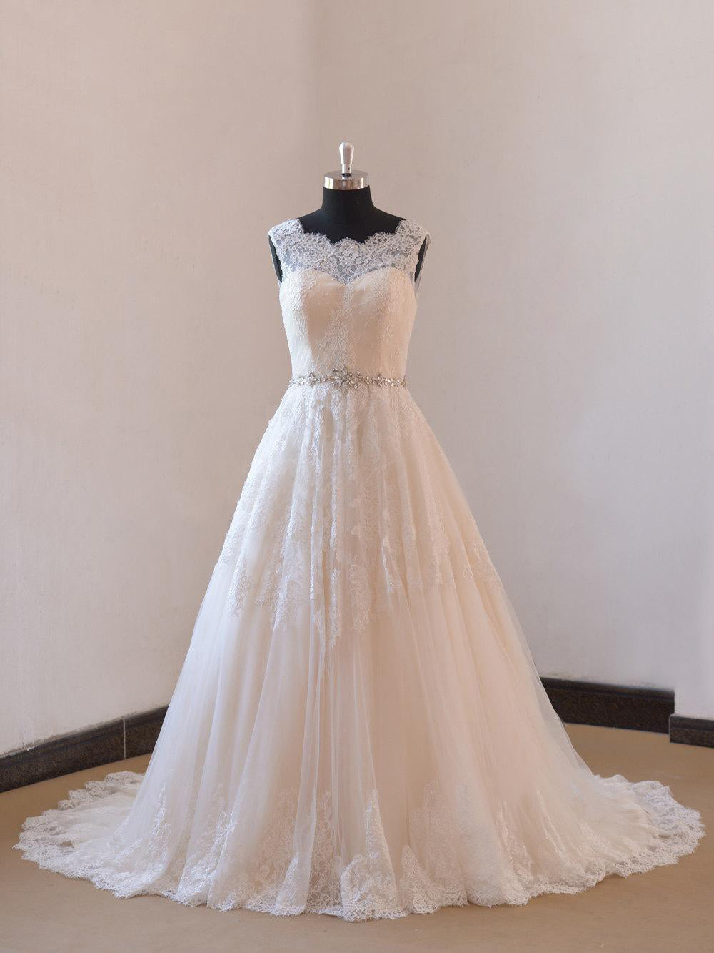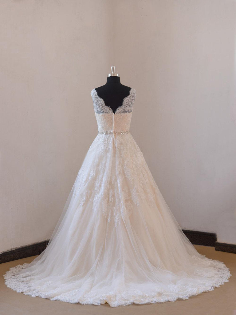 Every product is unique, just like you. If you're looking for a product that fits the mold of your life, the Lace A-Line Sleeveless Wedding Gown With Low-V Back and Beaded Sash-ET_711627 is for you.
