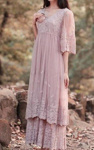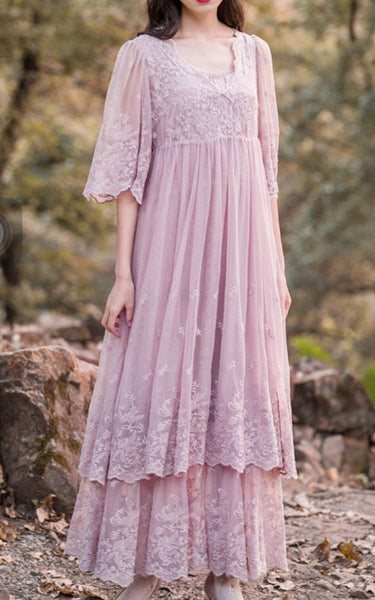 Lace Dress With Tiers&Flower&Embroideries-105956