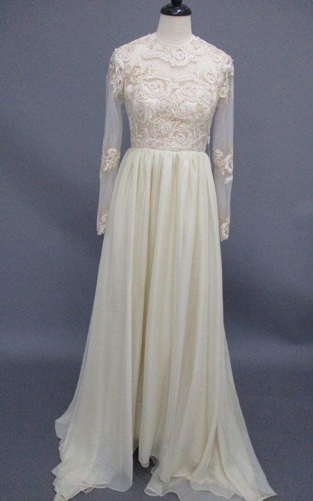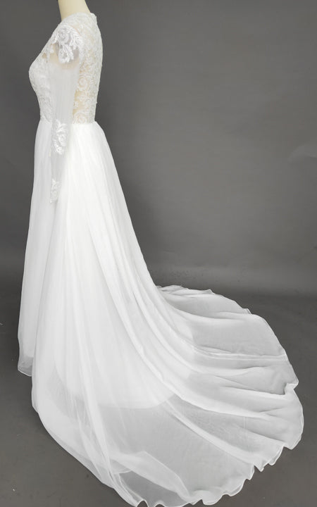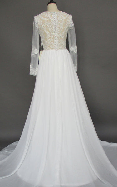 Bohemian Lace Long Sleeves Floor Length A Line Applique Chiffon Boho Bridal Gowns-Z715305