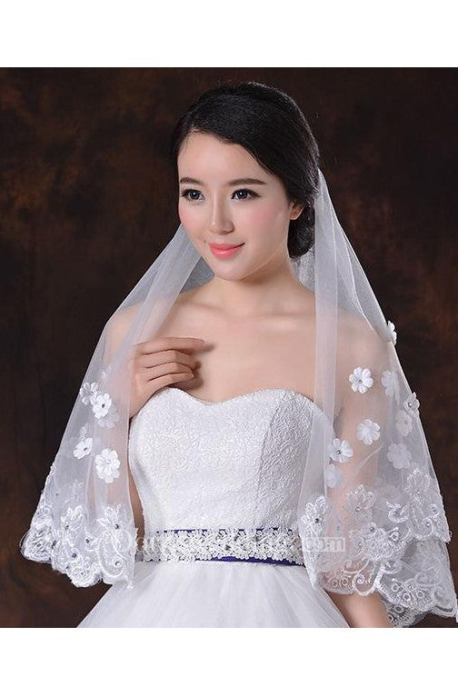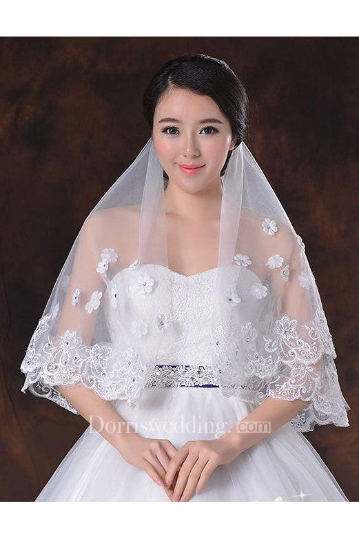 Latest Style Beautiful Wedding Veil with Flower Appliques and Beading