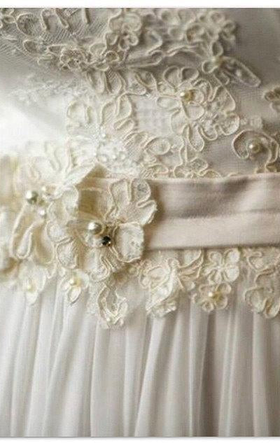 Long Chiffon Lace Weddig Dress With Beading Flower
